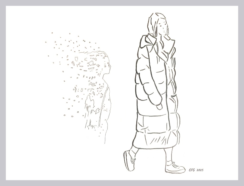 Moving Forwards ~ pen on paper print 42 x 30 cm © 2025
