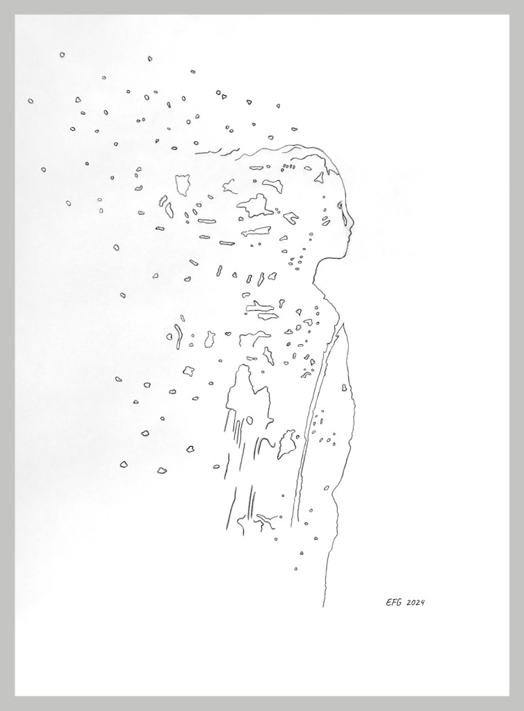 Shattered ~ pen on Bockingford paper 59 x 84 cm © 2024